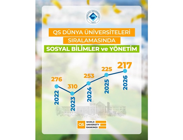 QS 2026 Alan Bazlı Dünya Üniversite Sıralamaları’na göre, üniversitemiz Sosyal Bilimler ve Yönetim alanında 217.,